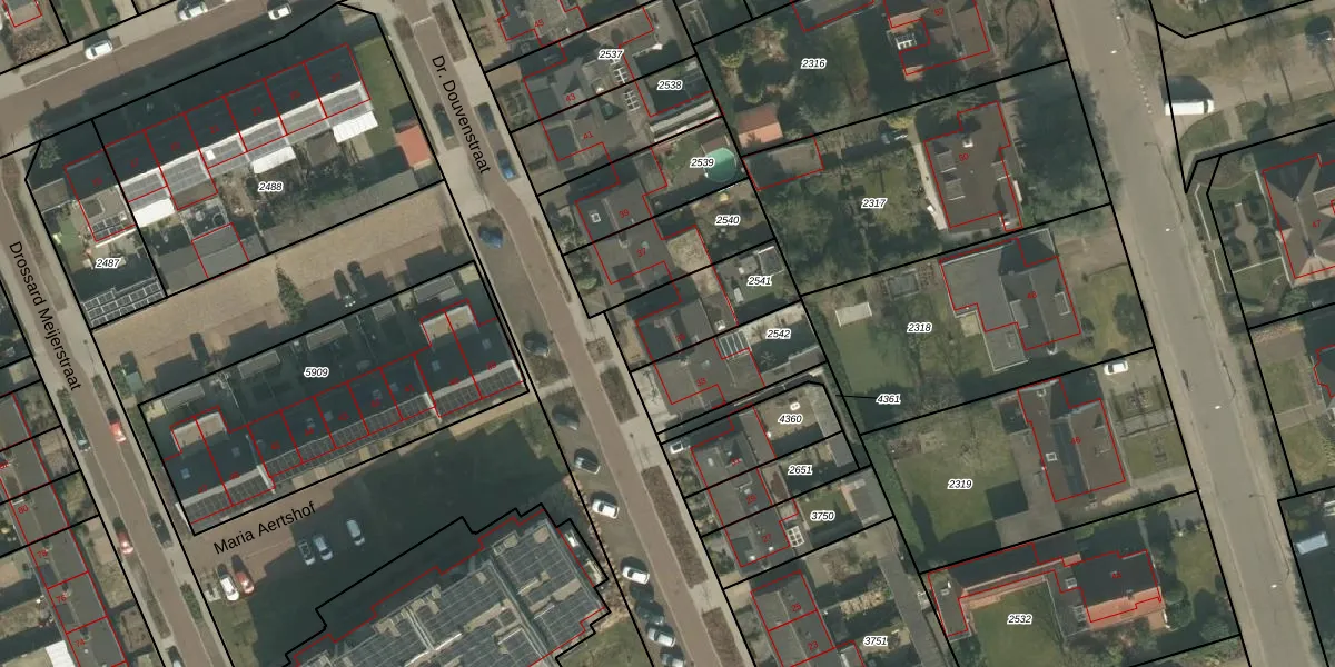 Dr. Douvenstraat 35 is gelegen op kadastraal perceel GMT00M2541. Deze kadastrale aanduiding is uniek en wordt gebruikt door het Kadaster om eigendomsrechten en andere zakelijke rechten vast te leggen. Het perceel maakt onderdeel uit van de kadastrale gemeente Gemert.