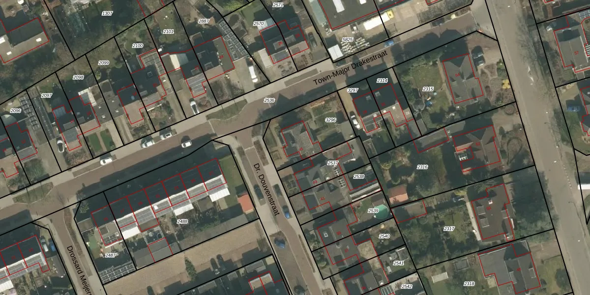 Dr. Douvenstraat 45 is gelegen op kadastraal perceel GMT00M3296. Deze kadastrale aanduiding is uniek en wordt gebruikt door het Kadaster om eigendomsrechten en andere zakelijke rechten vast te leggen. Het perceel maakt onderdeel uit van de kadastrale gemeente Gemert.