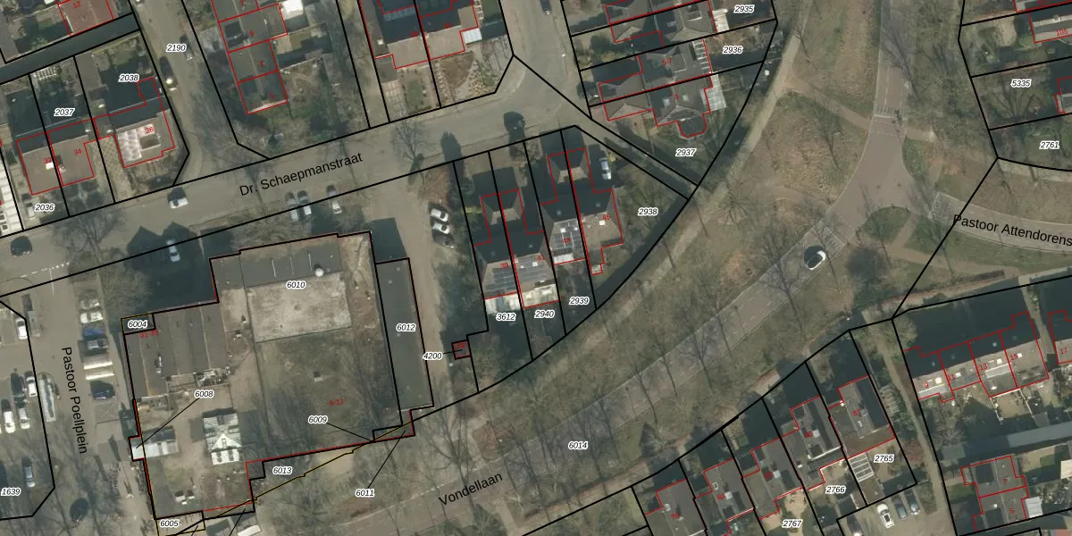 Dr. Schaepmanstraat 41 is gelegen op kadastraal perceel GMT00M2940. Deze kadastrale aanduiding is uniek en wordt gebruikt door het Kadaster om eigendomsrechten en andere zakelijke rechten vast te leggen. Het perceel maakt onderdeel uit van de kadastrale gemeente Gemert.