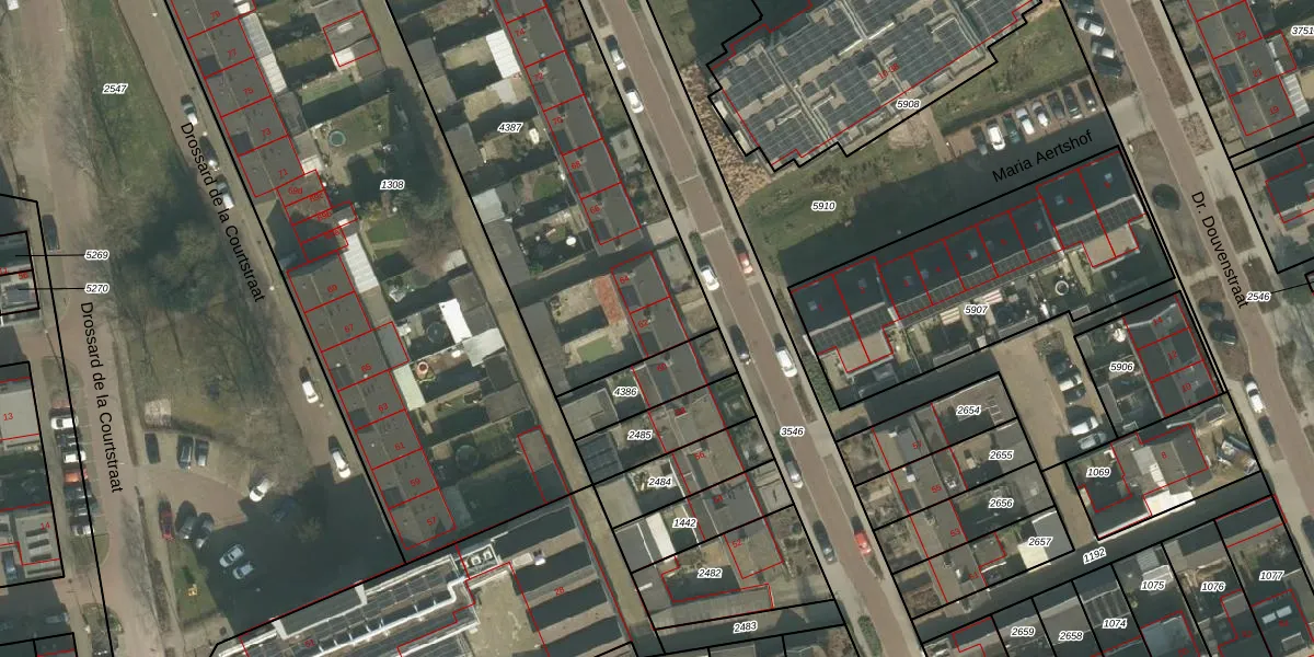 Het perceel waarop Drossard Meijerstraat 62 staat heeft een oppervlakte van 1885 m². Dit is een zeer groot perceel. De perceeloppervlakte wordt geregistreerd door het Kadaster. Gedetailleerde informatie over de maten van dit perceel kunt u vinden in het rapport Kadastrale kaart met maatvoering van Drossard Meijerstraat 62.
