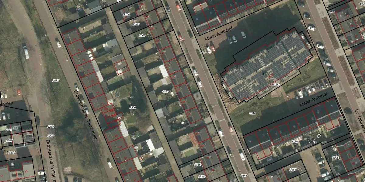 Het perceel waarop Drossard Meijerstraat 70 staat heeft een oppervlakte van 1885 m². Dit is een zeer groot perceel. De perceeloppervlakte wordt geregistreerd door het Kadaster. Gedetailleerde informatie over de maten van dit perceel kunt u vinden in het rapport Kadastrale kaart met maatvoering van Drossard Meijerstraat 70.