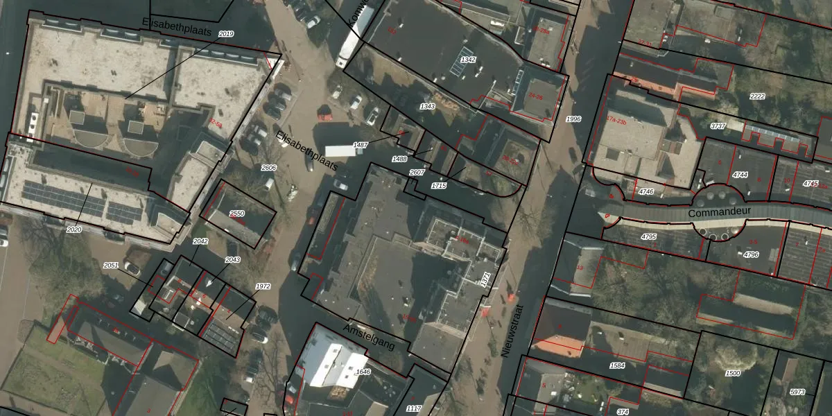 Het perceel waarop Elisabethplaats 35 staat heeft een oppervlakte van 1472 m². Dit is een zeer groot perceel. De perceeloppervlakte wordt geregistreerd door het Kadaster. Gedetailleerde informatie over de maten van dit perceel kunt u vinden in het rapport Kadastrale kaart met maatvoering van Elisabethplaats 35.