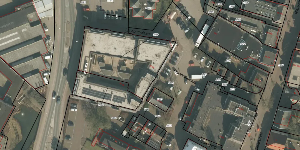 Het perceel waarop Elisabethplaats 50 staat heeft een oppervlakte van 1826 m². Dit is een zeer groot perceel. De perceeloppervlakte wordt geregistreerd door het Kadaster. Gedetailleerde informatie over de maten van dit perceel kunt u vinden in het rapport Kadastrale kaart met maatvoering van Elisabethplaats 50.