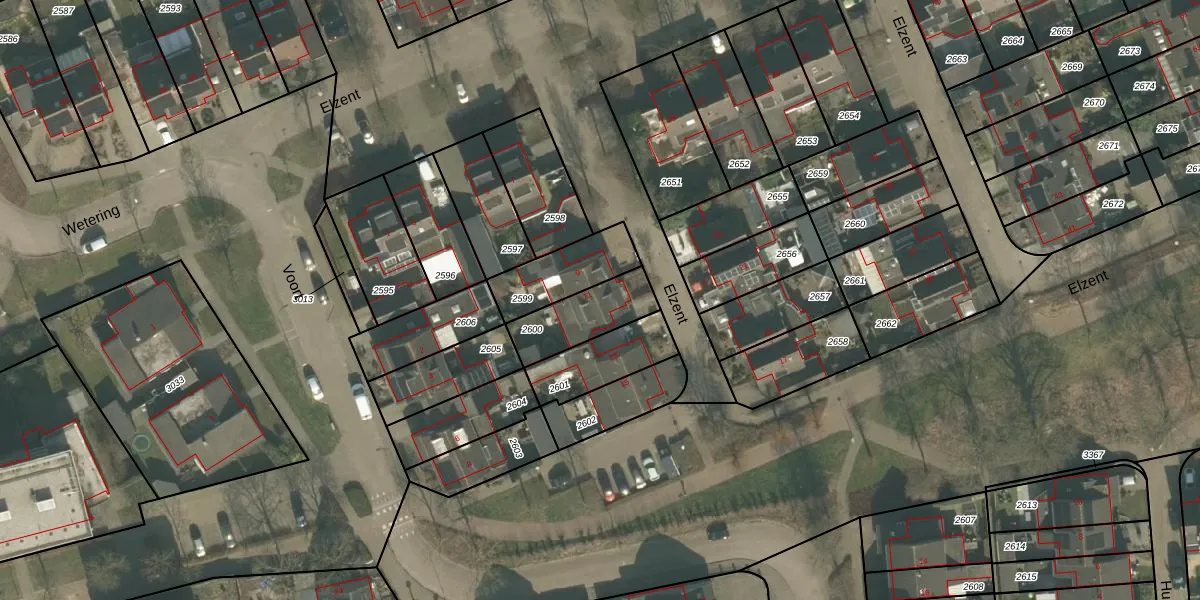 Gebruik de zoekbalk of klik op een perceel voor informatie over de adressen binnen dit perceel.
