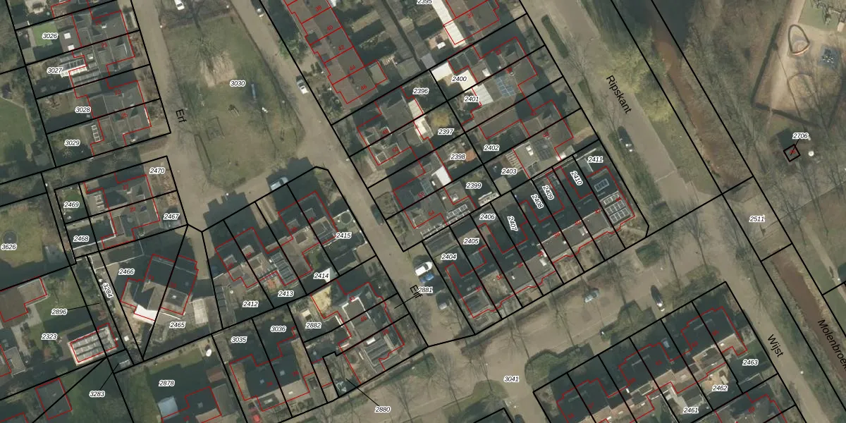 Gebruik de zoekbalk of klik op een perceel voor informatie over de adressen binnen dit perceel.