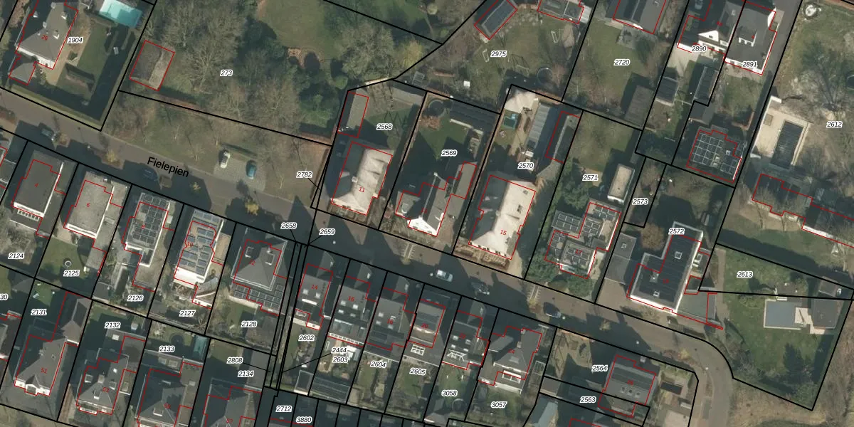 Fielepien 13 is gelegen op kadastraal perceel GMT00O2569. Deze kadastrale aanduiding is uniek en wordt gebruikt door het Kadaster om eigendomsrechten en andere zakelijke rechten vast te leggen. Het perceel maakt onderdeel uit van de kadastrale gemeente Gemert.
