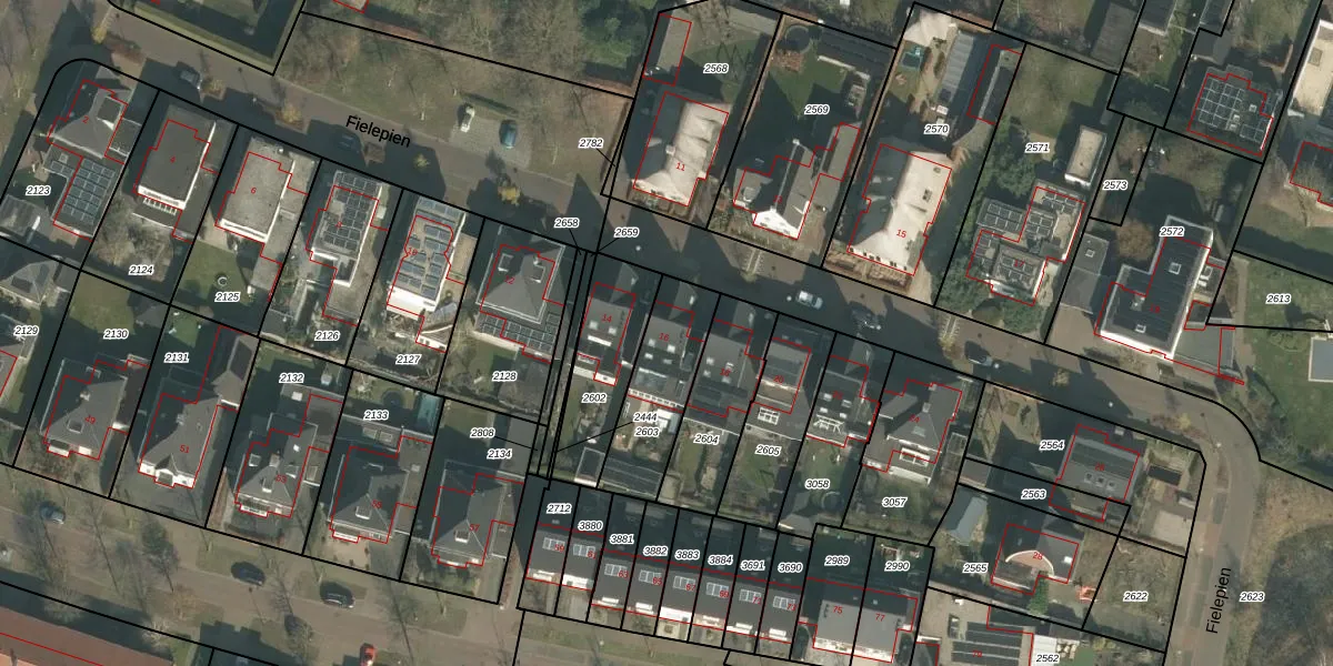 Fielepien 16 is gelegen op kadastraal perceel GMT00O2603. Deze kadastrale aanduiding is uniek en wordt gebruikt door het Kadaster om eigendomsrechten en andere zakelijke rechten vast te leggen. Het perceel maakt onderdeel uit van de kadastrale gemeente Gemert.