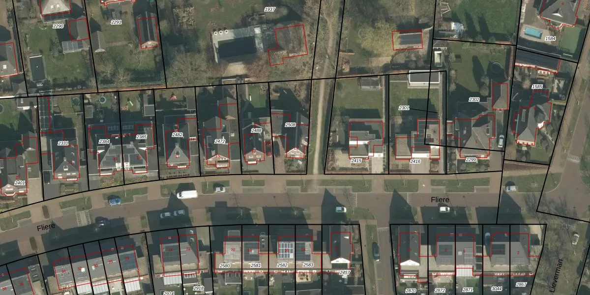 Het perceel waarop Fliere 11 staat heeft een oppervlakte van 405 m². Dit is een groot perceel. De perceeloppervlakte wordt geregistreerd door het Kadaster. Gedetailleerde informatie over de maten van dit perceel kunt u vinden in het rapport Kadastrale kaart met maatvoering van Fliere 11.