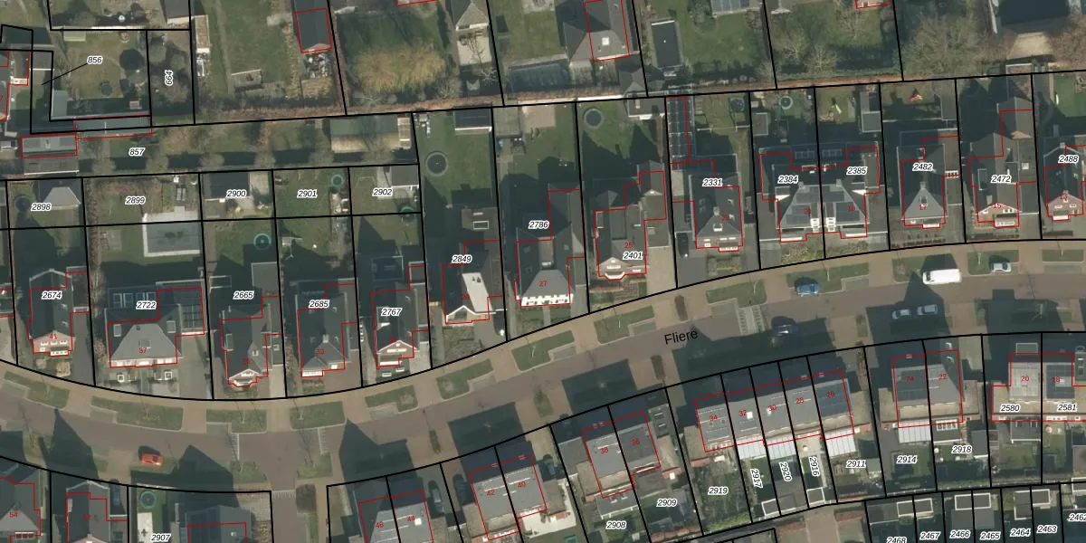 Het perceel waarop Fliere 27 staat heeft een oppervlakte van 635 m². Dit is een groot perceel. De perceeloppervlakte wordt geregistreerd door het Kadaster. Gedetailleerde informatie over de maten van dit perceel kunt u vinden in het rapport Kadastrale kaart met maatvoering van Fliere 27.