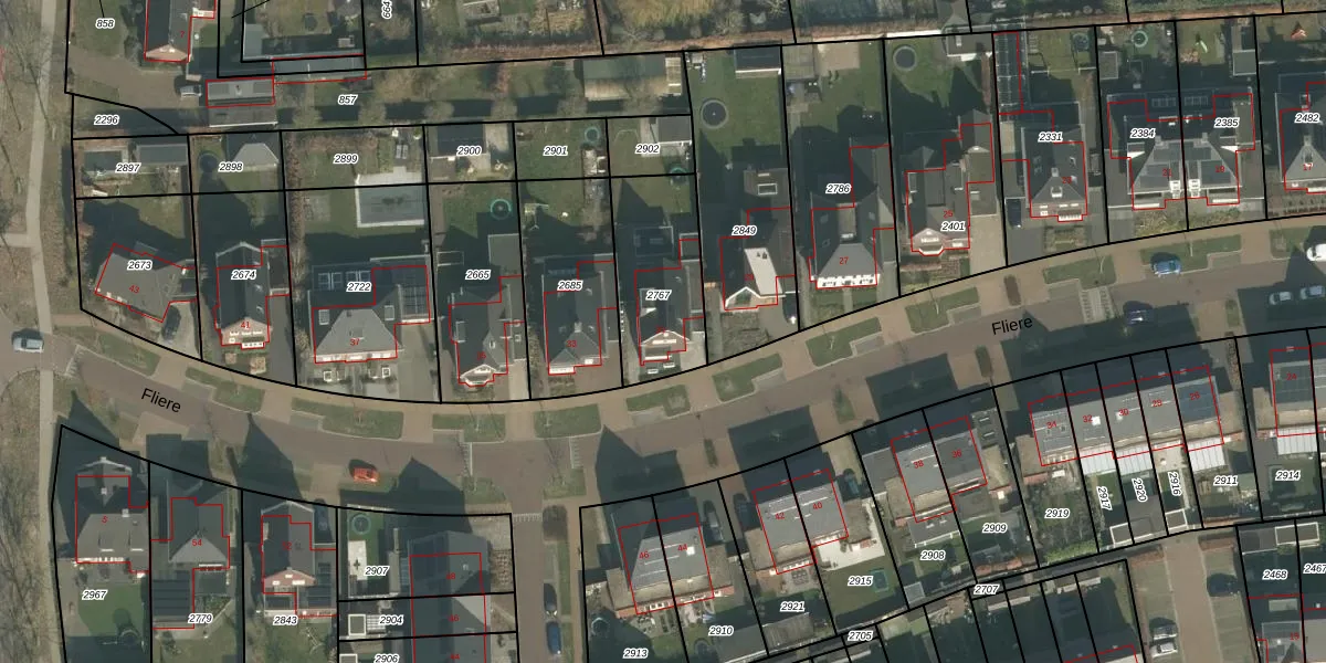 Het perceel waarop Fliere 31 staat heeft een oppervlakte van 394 m². Dit is een groot perceel. De perceeloppervlakte wordt geregistreerd door het Kadaster. Gedetailleerde informatie over de maten van dit perceel kunt u vinden in het rapport Kadastrale kaart met maatvoering van Fliere 31.