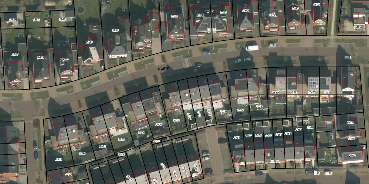 Het perceel waarop Fliere 32 staat heeft een oppervlakte van 152 m². Dit is een middelgroot perceel. De perceeloppervlakte wordt geregistreerd door het Kadaster. Gedetailleerde informatie over de maten van dit perceel kunt u vinden in het rapport Kadastrale kaart met maatvoering van Fliere 32.