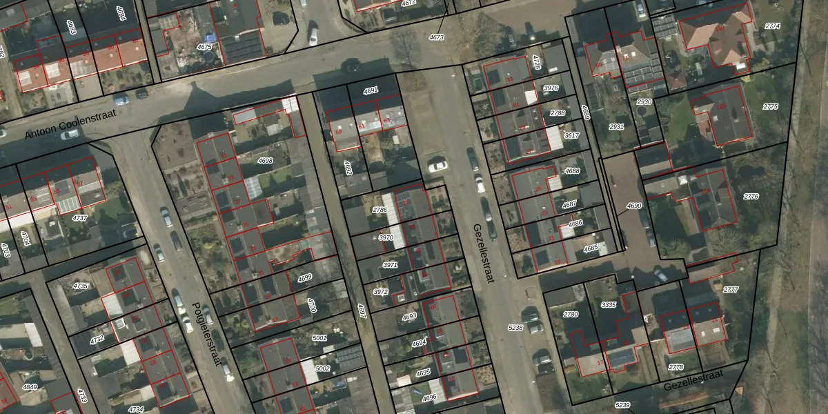 Het perceel waarop Gezellestraat 26 staat heeft een oppervlakte van 218 m². Dit is een middelgroot perceel. De perceeloppervlakte wordt geregistreerd door het Kadaster. Gedetailleerde informatie over de maten van dit perceel kunt u vinden in het rapport Kadastrale kaart met maatvoering van Gezellestraat 26.