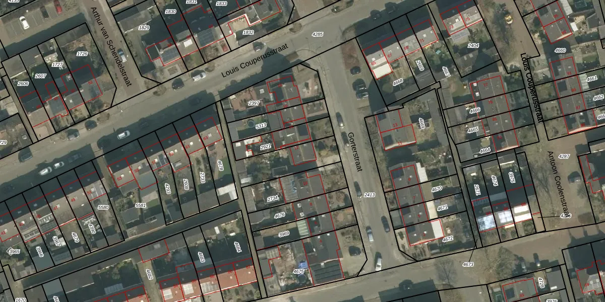 Het perceel waarop Gorterstraat 12 staat heeft een oppervlakte van 1335 m². Dit is een zeer groot perceel. De perceeloppervlakte wordt geregistreerd door het Kadaster. Gedetailleerde informatie over de maten van dit perceel kunt u vinden in het rapport Kadastrale kaart met maatvoering van Gorterstraat 12.