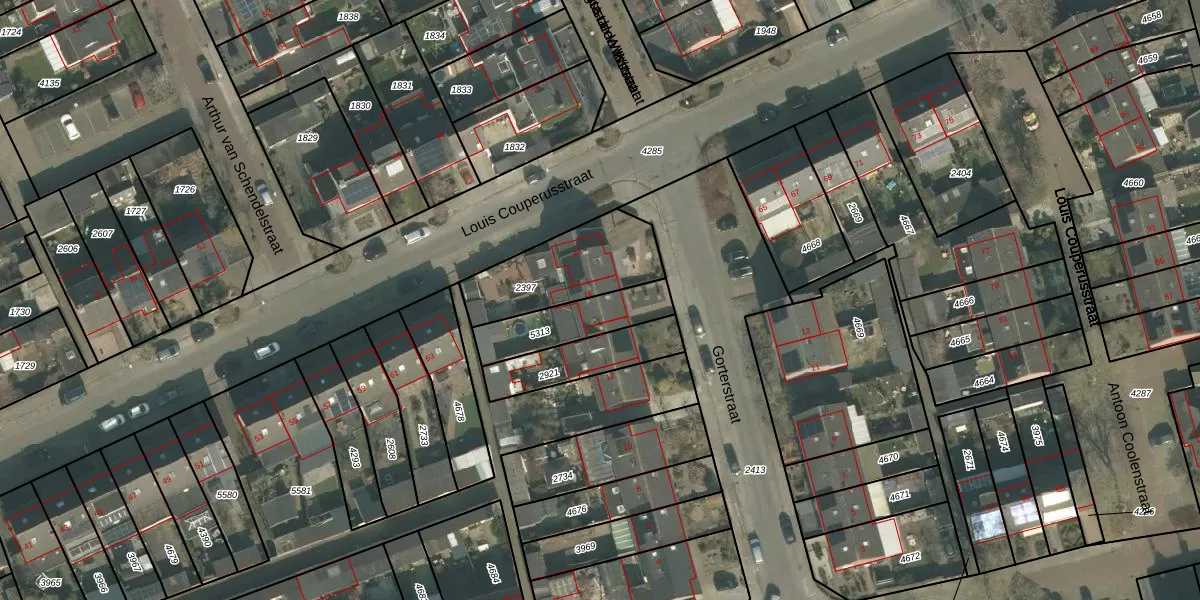 Het perceel waarop Gorterstraat 16 staat heeft een oppervlakte van 215 m². Dit is een middelgroot perceel. De perceeloppervlakte wordt geregistreerd door het Kadaster. Gedetailleerde informatie over de maten van dit perceel kunt u vinden in het rapport Kadastrale kaart met maatvoering van Gorterstraat 16.