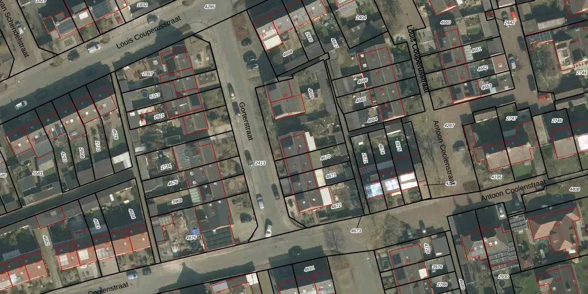 Het perceel waarop Gorterstraat 9 staat heeft een oppervlakte van 672 m². Dit is een groot perceel. De perceeloppervlakte wordt geregistreerd door het Kadaster. Gedetailleerde informatie over de maten van dit perceel kunt u vinden in het rapport Kadastrale kaart met maatvoering van Gorterstraat 9.