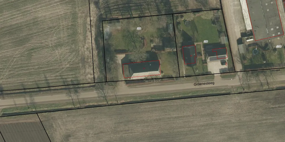 Het perceel waarop Groenesteeg 17 staat heeft een oppervlakte van 2220 m². Dit is een zeer groot perceel. De perceeloppervlakte wordt geregistreerd door het Kadaster. Gedetailleerde informatie over de maten van dit perceel kunt u vinden in het rapport Kadastrale kaart met maatvoering van Groenesteeg 17.