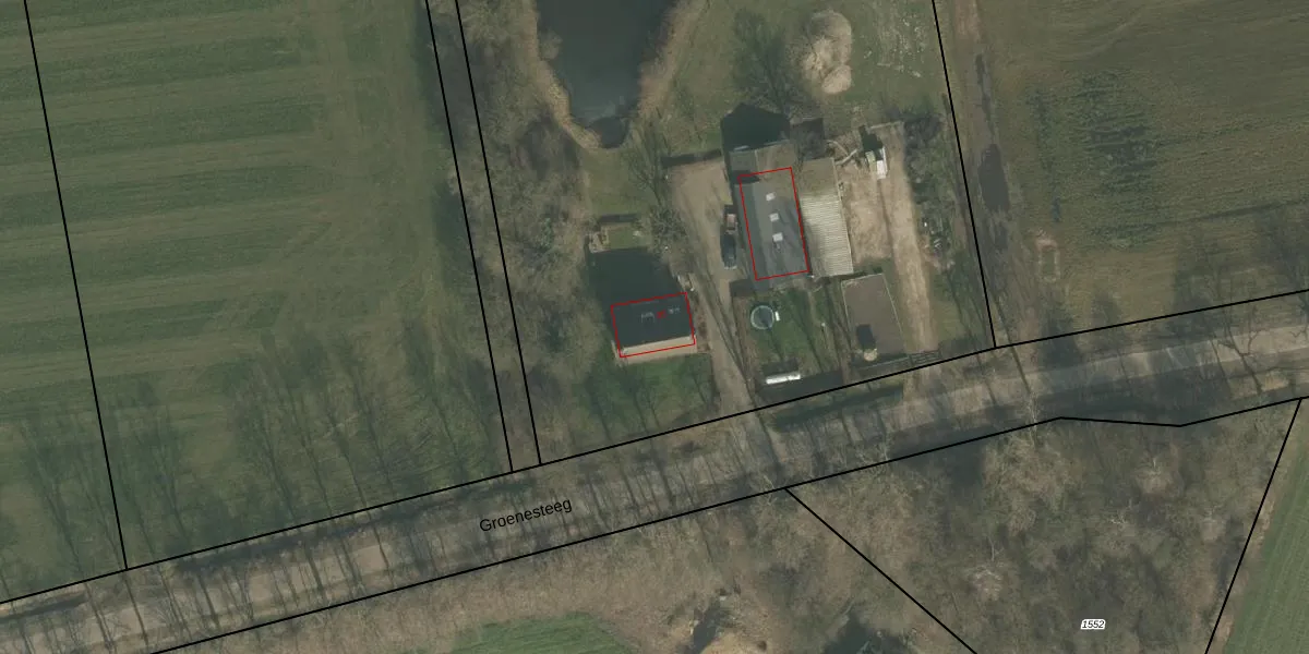 Het perceel waarop Groenesteeg 35 staat heeft een oppervlakte van 1,2 ha. Dit is een zeer groot perceel. De perceeloppervlakte wordt geregistreerd door het Kadaster. Gedetailleerde informatie over de maten van dit perceel kunt u vinden in het rapport Kadastrale kaart met maatvoering van Groenesteeg 35.