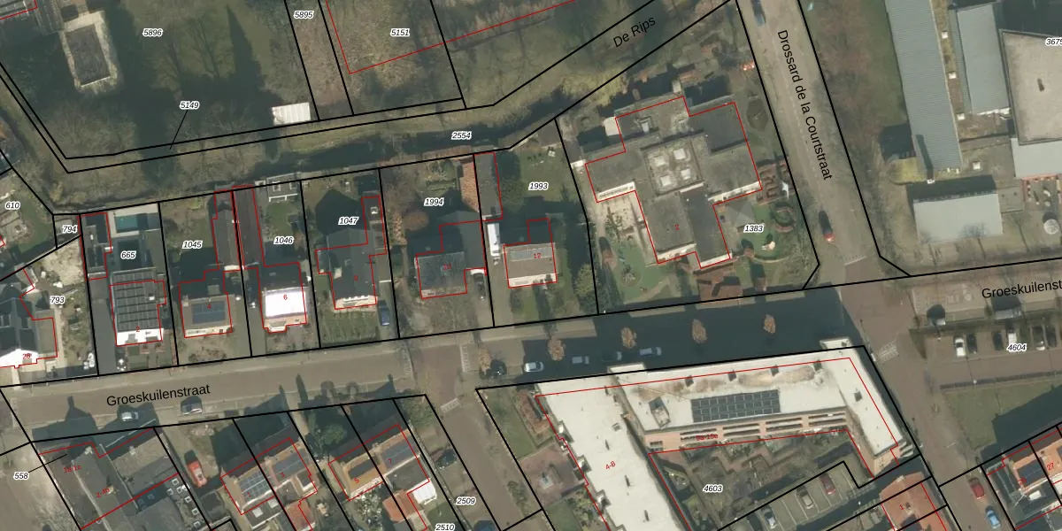 Het perceel waarop Groeskuilenstraat 12 staat heeft een oppervlakte van 653 m². Dit is een groot perceel. De perceeloppervlakte wordt geregistreerd door het Kadaster. Gedetailleerde informatie over de maten van dit perceel kunt u vinden in het rapport Kadastrale kaart met maatvoering van Groeskuilenstraat 12.