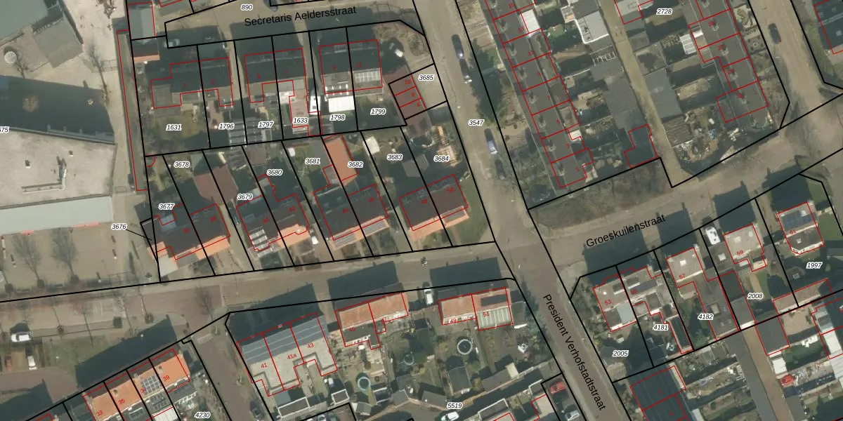Gebruik de zoekbalk of klik op een perceel voor informatie over de adressen binnen dit perceel.