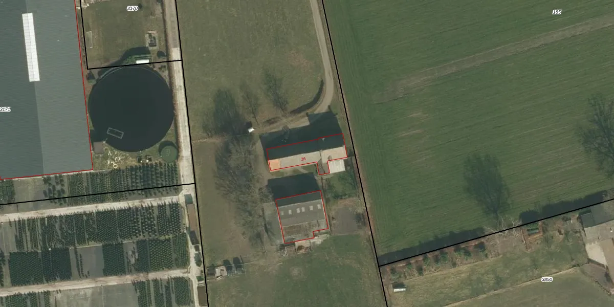 Het perceel waarop Handelsesteeg 26 staat heeft een oppervlakte van 3,9 ha. Dit is een zeer groot perceel. De perceeloppervlakte wordt geregistreerd door het Kadaster. Gedetailleerde informatie over de maten van dit perceel kunt u vinden in het rapport Kadastrale kaart met maatvoering van Handelsesteeg 26.