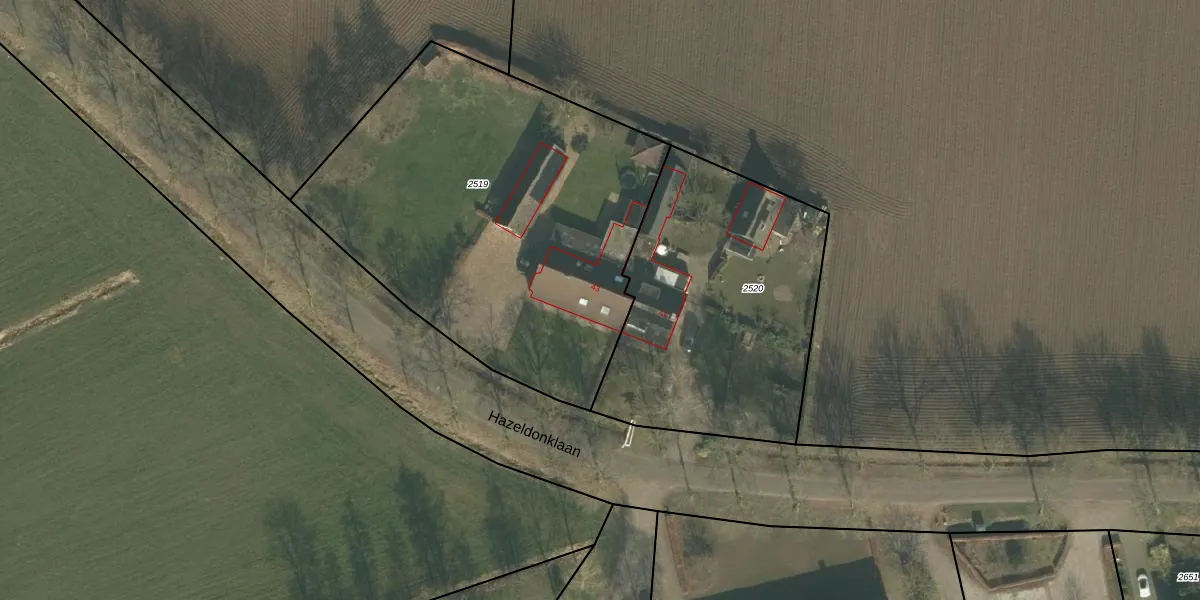 Hazeldonklaan 43 is gelegen op kadastraal perceel GMT00H2519. Deze kadastrale aanduiding is uniek en wordt gebruikt door het Kadaster om eigendomsrechten en andere zakelijke rechten vast te leggen. Het perceel maakt onderdeel uit van de kadastrale gemeente Gemert.