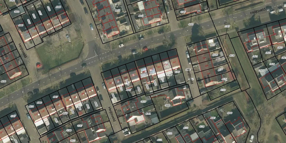 Gebruik de zoekbalk of klik op een perceel voor informatie over de adressen binnen dit perceel.