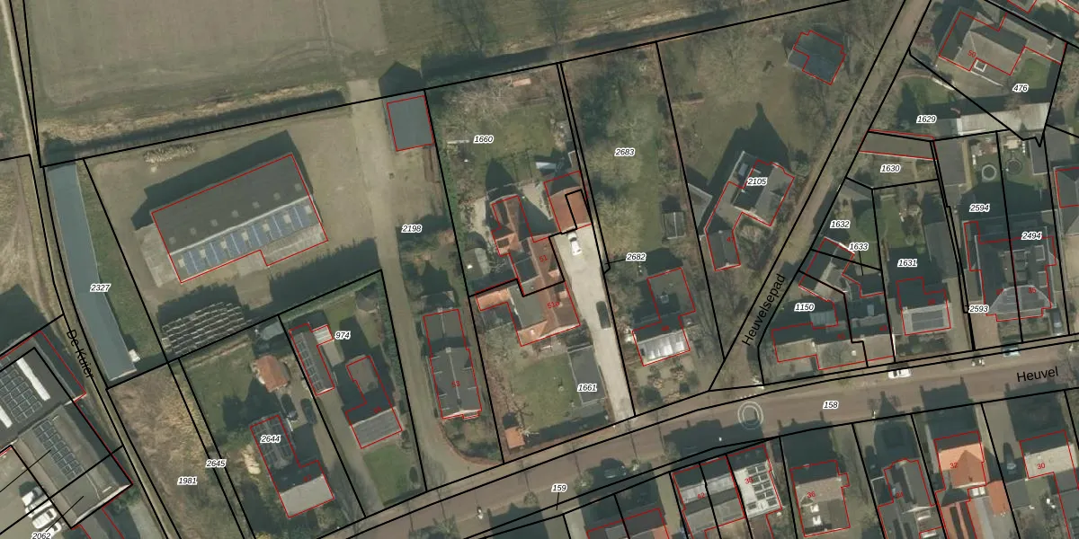 Het perceel waarop Heuvel 51 staat heeft een oppervlakte van 900 m². Dit is een groot perceel. De perceeloppervlakte wordt geregistreerd door het Kadaster. Gedetailleerde informatie over de maten van dit perceel kunt u vinden in het rapport Kadastrale kaart met maatvoering van Heuvel 51.