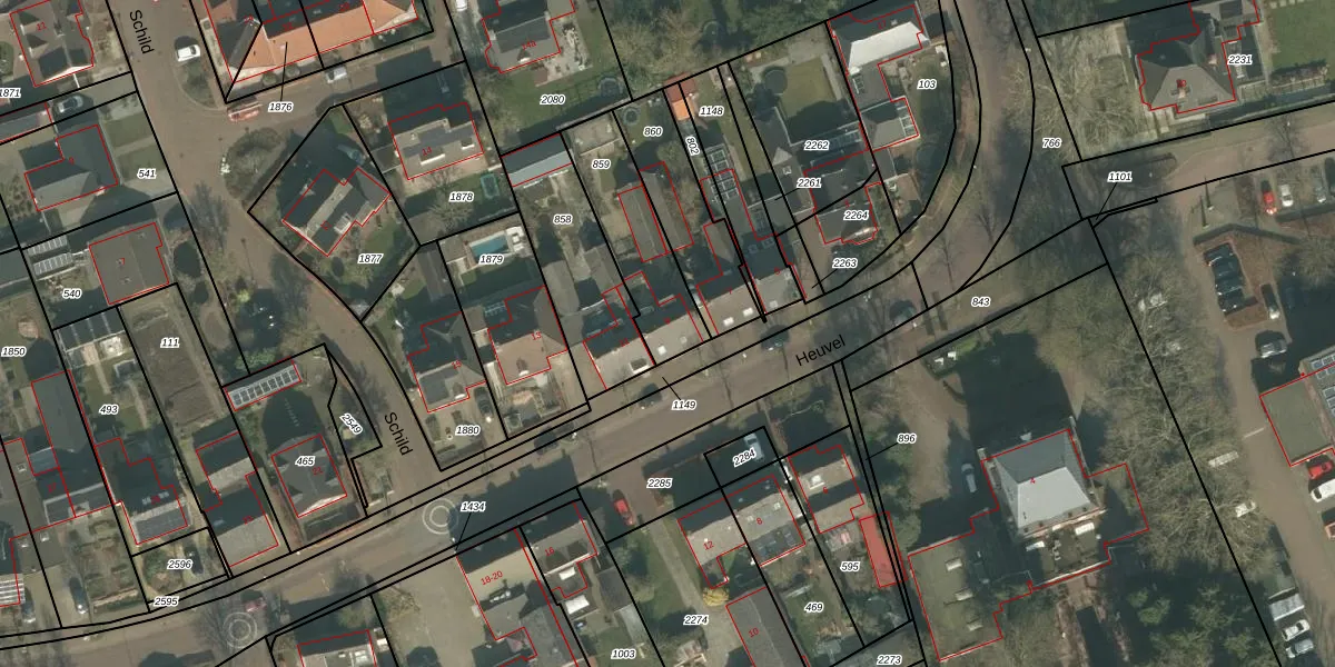 Het perceel waarop Heuvel 9 staat heeft een oppervlakte van 329 m². Dit is een groot perceel. De perceeloppervlakte wordt geregistreerd door het Kadaster. Gedetailleerde informatie over de maten van dit perceel kunt u vinden in het rapport Kadastrale kaart met maatvoering van Heuvel 9.