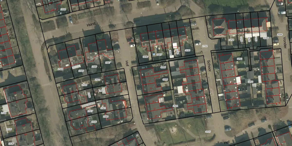 Het perceel waarop Hof 4 staat heeft een oppervlakte van 509 m². Dit is een groot perceel. De perceeloppervlakte wordt geregistreerd door het Kadaster. Gedetailleerde informatie over de maten van dit perceel kunt u vinden in het rapport Kadastrale kaart met maatvoering van Hof 4.
