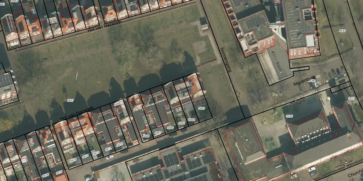 Het perceel waarop Hof van Nazareth 34 staat heeft een oppervlakte van 165 m². Dit is een middelgroot perceel. De perceeloppervlakte wordt geregistreerd door het Kadaster. Gedetailleerde informatie over de maten van dit perceel kunt u vinden in het rapport Kadastrale kaart met maatvoering van Hof van Nazareth 34.