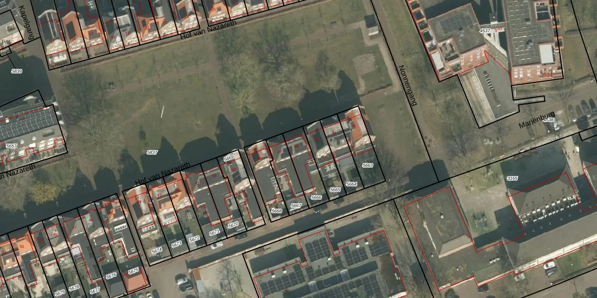 Het perceel waarop Hof van Nazareth 36 staat heeft een oppervlakte van 192 m². Dit is een middelgroot perceel. De perceeloppervlakte wordt geregistreerd door het Kadaster. Gedetailleerde informatie over de maten van dit perceel kunt u vinden in het rapport Kadastrale kaart met maatvoering van Hof van Nazareth 36.