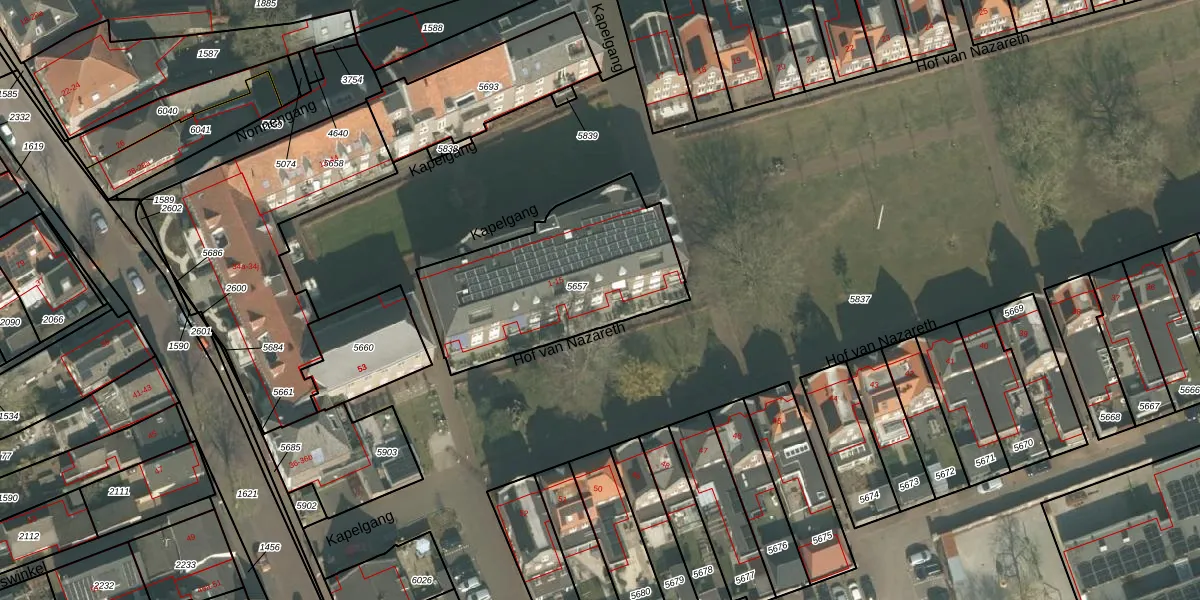 Het perceel waarop Hof van Nazareth 4 staat heeft een oppervlakte van 830 m². Dit is een groot perceel. De perceeloppervlakte wordt geregistreerd door het Kadaster. Gedetailleerde informatie over de maten van dit perceel kunt u vinden in het rapport Kadastrale kaart met maatvoering van Hof van Nazareth 4.