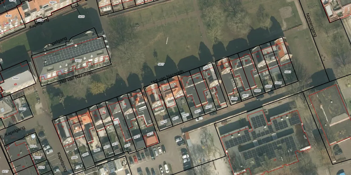 Het perceel waarop Hof van Nazareth 42 staat heeft een oppervlakte van 161 m². Dit is een middelgroot perceel. De perceeloppervlakte wordt geregistreerd door het Kadaster. Gedetailleerde informatie over de maten van dit perceel kunt u vinden in het rapport Kadastrale kaart met maatvoering van Hof van Nazareth 42.