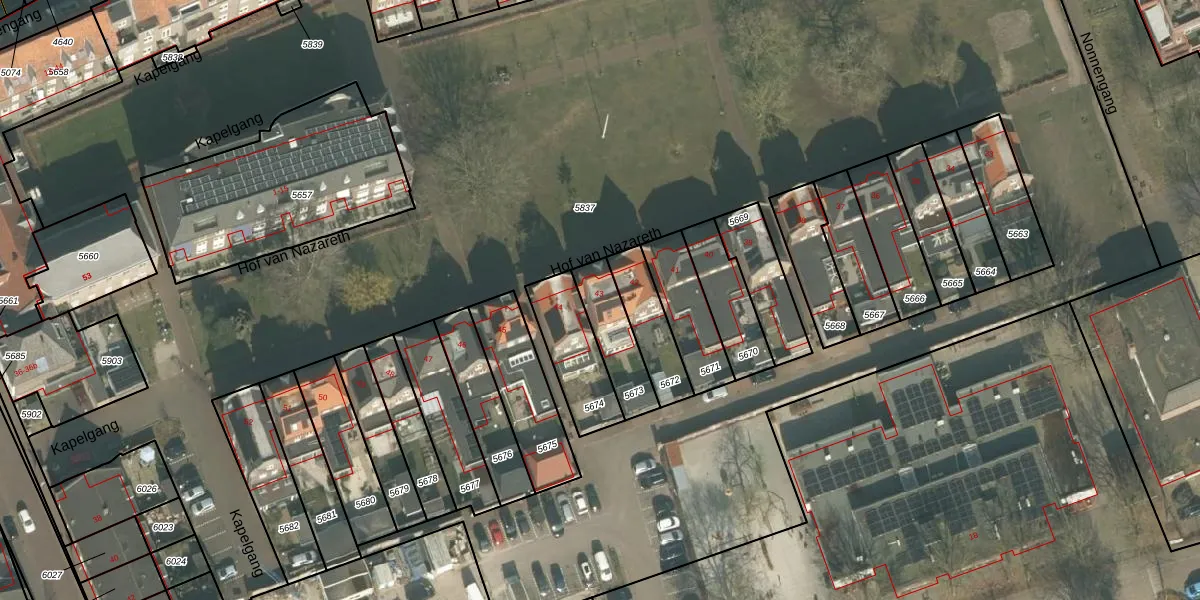 Gebruik de zoekbalk of klik op een perceel voor informatie over de adressen binnen dit perceel.