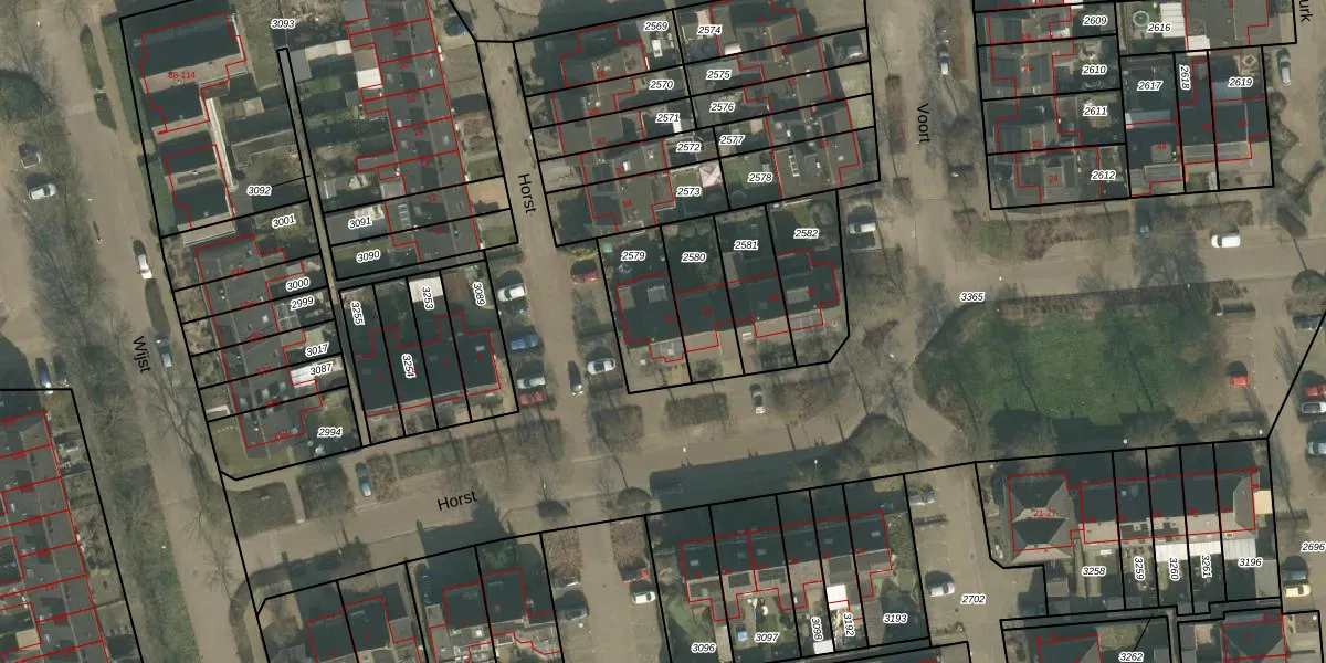Het perceel waarop Horst 36 staat heeft een oppervlakte van 234 m². Dit is een middelgroot perceel. De perceeloppervlakte wordt geregistreerd door het Kadaster. Gedetailleerde informatie over de maten van dit perceel kunt u vinden in het rapport Kadastrale kaart met maatvoering van Horst 36.