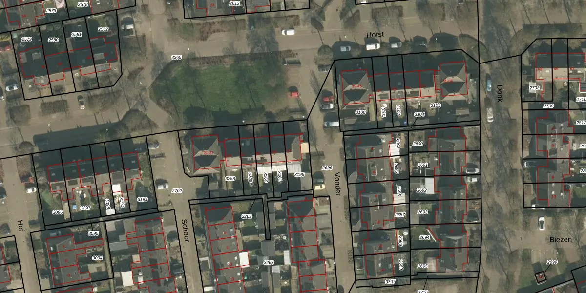 Gebruik de zoekbalk of klik op een perceel voor informatie over de adressen binnen dit perceel.