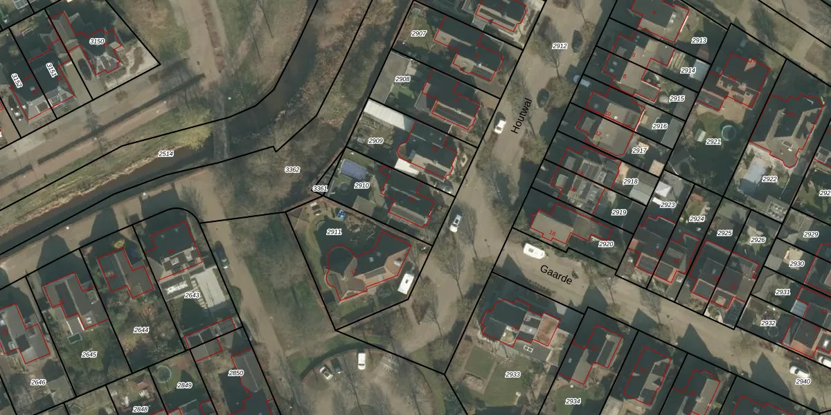Het perceel waarop Houtwal 15 staat heeft een oppervlakte van 377 m². Dit is een groot perceel. De perceeloppervlakte wordt geregistreerd door het Kadaster. Gedetailleerde informatie over de maten van dit perceel kunt u vinden in het rapport Kadastrale kaart met maatvoering van Houtwal 15.