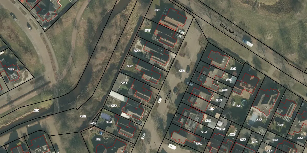 Het perceel waarop Houtwal 9 staat heeft een oppervlakte van 377 m². Dit is een groot perceel. De perceeloppervlakte wordt geregistreerd door het Kadaster. Gedetailleerde informatie over de maten van dit perceel kunt u vinden in het rapport Kadastrale kaart met maatvoering van Houtwal 9.