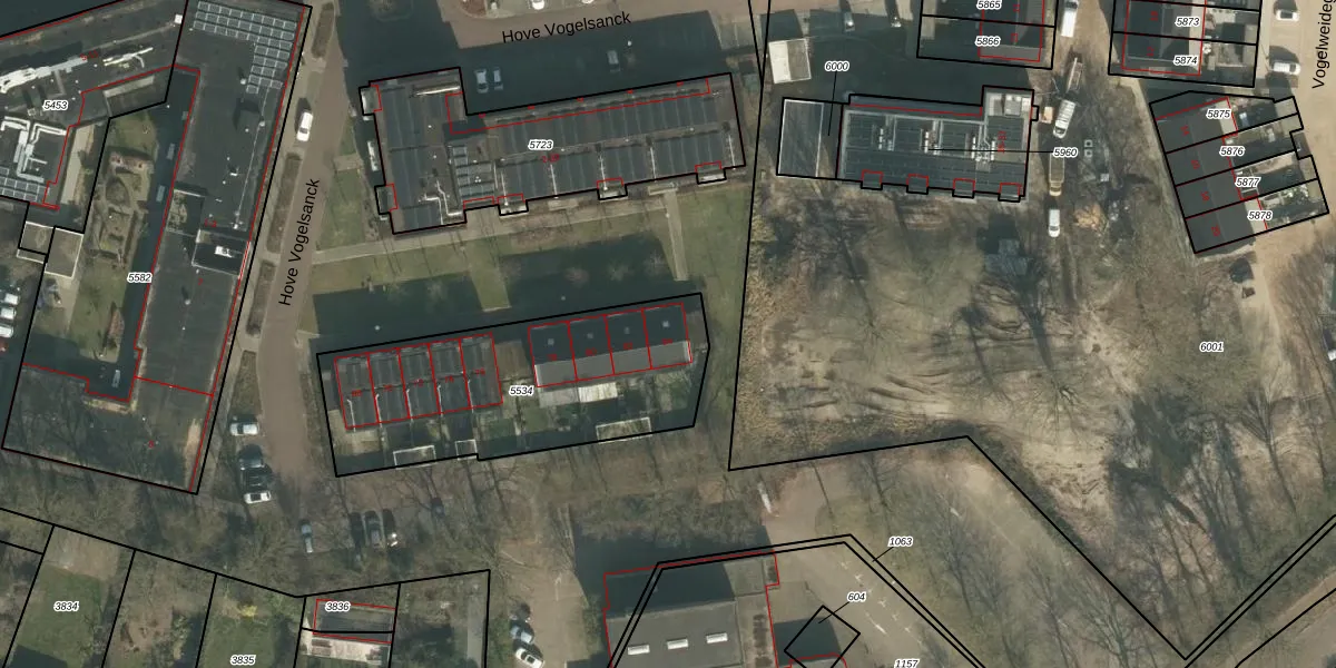 Het perceel waarop Hove Vogelsanck 84 staat heeft een oppervlakte van 1090 m². Dit is een zeer groot perceel. De perceeloppervlakte wordt geregistreerd door het Kadaster. Gedetailleerde informatie over de maten van dit perceel kunt u vinden in het rapport Kadastrale kaart met maatvoering van Hove Vogelsanck 84.