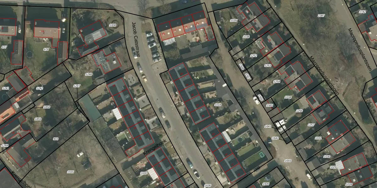 Het perceel waarop Jacob Catsstraat 29 staat heeft een oppervlakte van 2830 m². Dit is een zeer groot perceel. De perceeloppervlakte wordt geregistreerd door het Kadaster. Gedetailleerde informatie over de maten van dit perceel kunt u vinden in het rapport Kadastrale kaart met maatvoering van Jacob Catsstraat 29.
