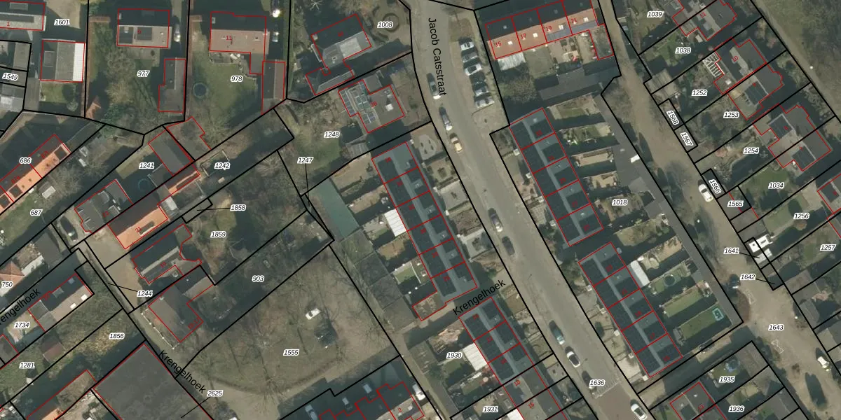 Het perceel waarop Jacob Catsstraat 32 staat heeft een oppervlakte van 2186 m². Dit is een zeer groot perceel. De perceeloppervlakte wordt geregistreerd door het Kadaster. Gedetailleerde informatie over de maten van dit perceel kunt u vinden in het rapport Kadastrale kaart met maatvoering van Jacob Catsstraat 32.