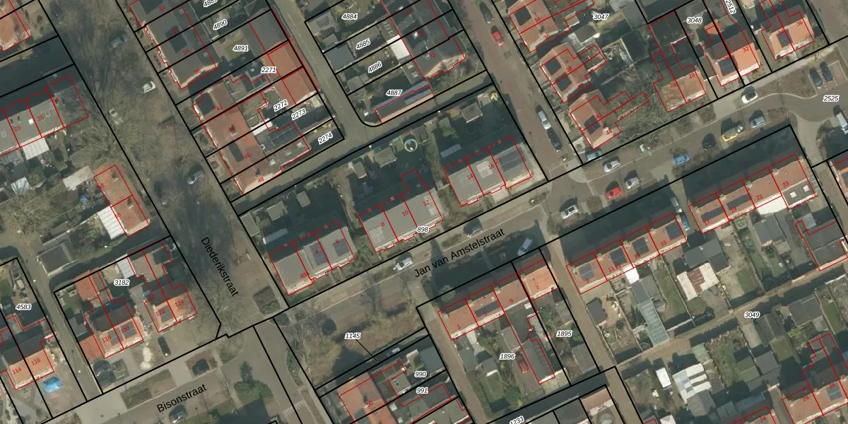 Het perceel waarop Jan van Amstelstraat 12 staat heeft een oppervlakte van 1784 m². Dit is een zeer groot perceel. De perceeloppervlakte wordt geregistreerd door het Kadaster. Gedetailleerde informatie over de maten van dit perceel kunt u vinden in het rapport Kadastrale kaart met maatvoering van Jan van Amstelstraat 12.
