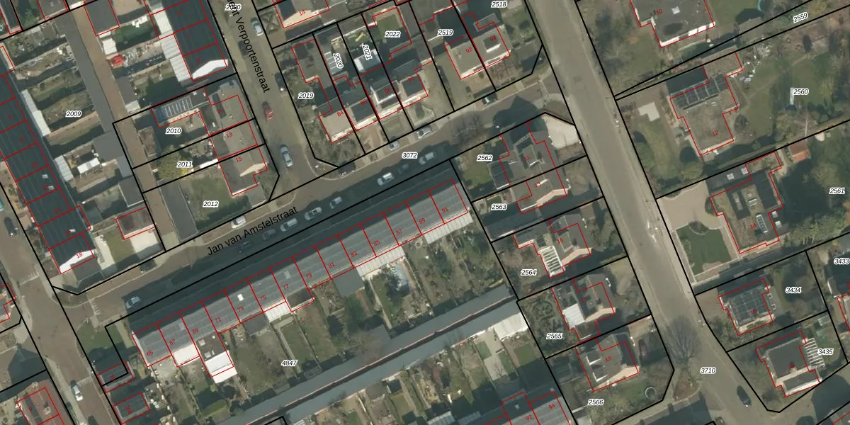 Het perceel waarop Jan van Amstelstraat 89 staat heeft een oppervlakte van 6551 m². Dit is een zeer groot perceel. De perceeloppervlakte wordt geregistreerd door het Kadaster. Gedetailleerde informatie over de maten van dit perceel kunt u vinden in het rapport Kadastrale kaart met maatvoering van Jan van Amstelstraat 89.