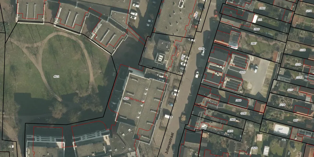Julianastraat 2-T002 is gelegen op kadastraal perceel GMT00M4620. Deze kadastrale aanduiding is uniek en wordt gebruikt door het Kadaster om eigendomsrechten en andere zakelijke rechten vast te leggen. Het perceel maakt onderdeel uit van de kadastrale gemeente Gemert.
