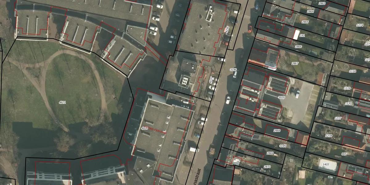 Het perceel waarop het adres ligt is GMT00-M-4237. De afkorting 'GMT00' staat voor kadastrale gemeente Gemert. Het perceel is 656 m² groot. Dat is kleiner dan de gemiddelde perceeloppervlakte in Gemert, dat op 4652,01 m² ligt. De grootste perceeloppervlakte in de kadastrale gemeente is 67,8 ha. De kleinste oppervlakte bedraagt 0 m². Er zijn 26 adressen aanwezig op het perceel. In de Basisregistratie Kadaster (BRK) werden de grenzen van het perceel geregistreerd op 14-02-2007.