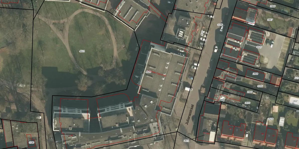 Het perceel waarop Julianastraat 2-T229 staat heeft een oppervlakte van 8605 m². Dit is een zeer groot perceel. De perceeloppervlakte wordt geregistreerd door het Kadaster. Gedetailleerde informatie over de maten van dit perceel kunt u vinden in het rapport Kadastrale kaart met maatvoering van Julianastraat 2-T229.