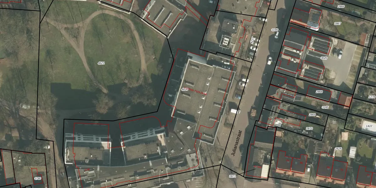 Julianastraat 2-T329 is gelegen op kadastraal perceel GMT00M4620. Deze kadastrale aanduiding is uniek en wordt gebruikt door het Kadaster om eigendomsrechten en andere zakelijke rechten vast te leggen. Het perceel maakt onderdeel uit van de kadastrale gemeente Gemert.