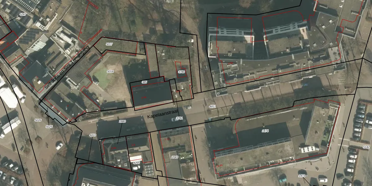 Het perceel waarop Kapelaanstraat 12 staat heeft een oppervlakte van 383 m². Dit is een groot perceel. De perceeloppervlakte wordt geregistreerd door het Kadaster. Gedetailleerde informatie over de maten van dit perceel kunt u vinden in het rapport Kadastrale kaart met maatvoering van Kapelaanstraat 12.