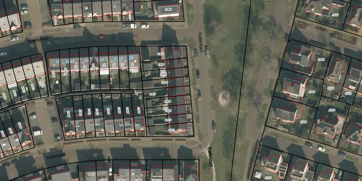 Kattestart 11 is gelegen op kadastraal perceel GMT00O2407. Deze kadastrale aanduiding is uniek en wordt gebruikt door het Kadaster om eigendomsrechten en andere zakelijke rechten vast te leggen. Het perceel maakt onderdeel uit van de kadastrale gemeente Gemert.