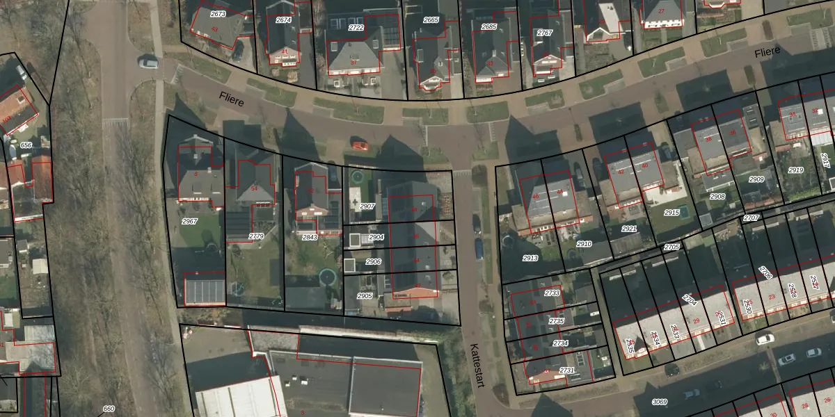 Kattestart 48 is gelegen op kadastraal perceel GMT00O2907. Deze kadastrale aanduiding is uniek en wordt gebruikt door het Kadaster om eigendomsrechten en andere zakelijke rechten vast te leggen. Het perceel maakt onderdeel uit van de kadastrale gemeente Gemert.